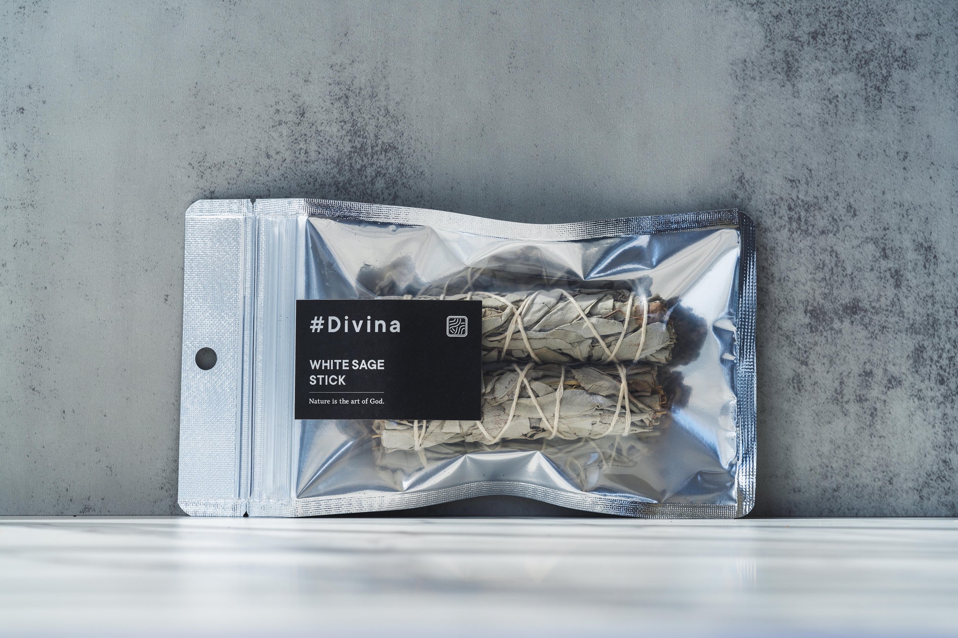 パロサントブランドである#Divinaの裏ラインナップです。パロサントと対をなす浄化力が高いと言われるホワイトセージのラインナップです。