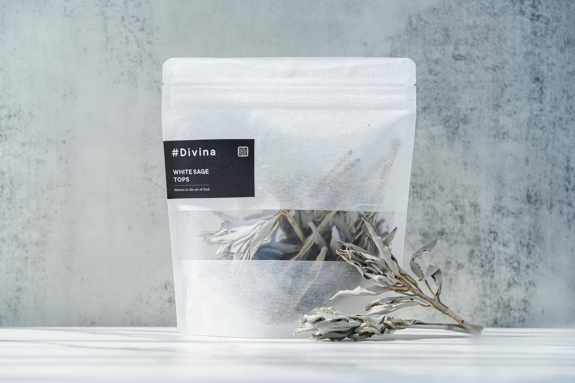 パロサントブランドである#Divinaの裏ラインナップです。パロサントと対をなす浄化力が高いと言われるホワイトセージのラインナップです。
