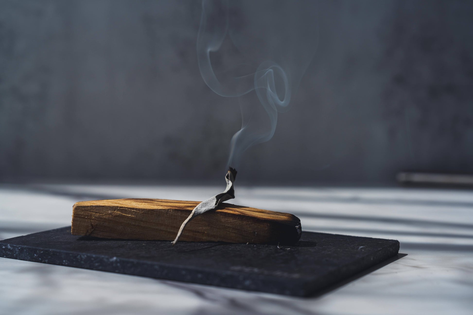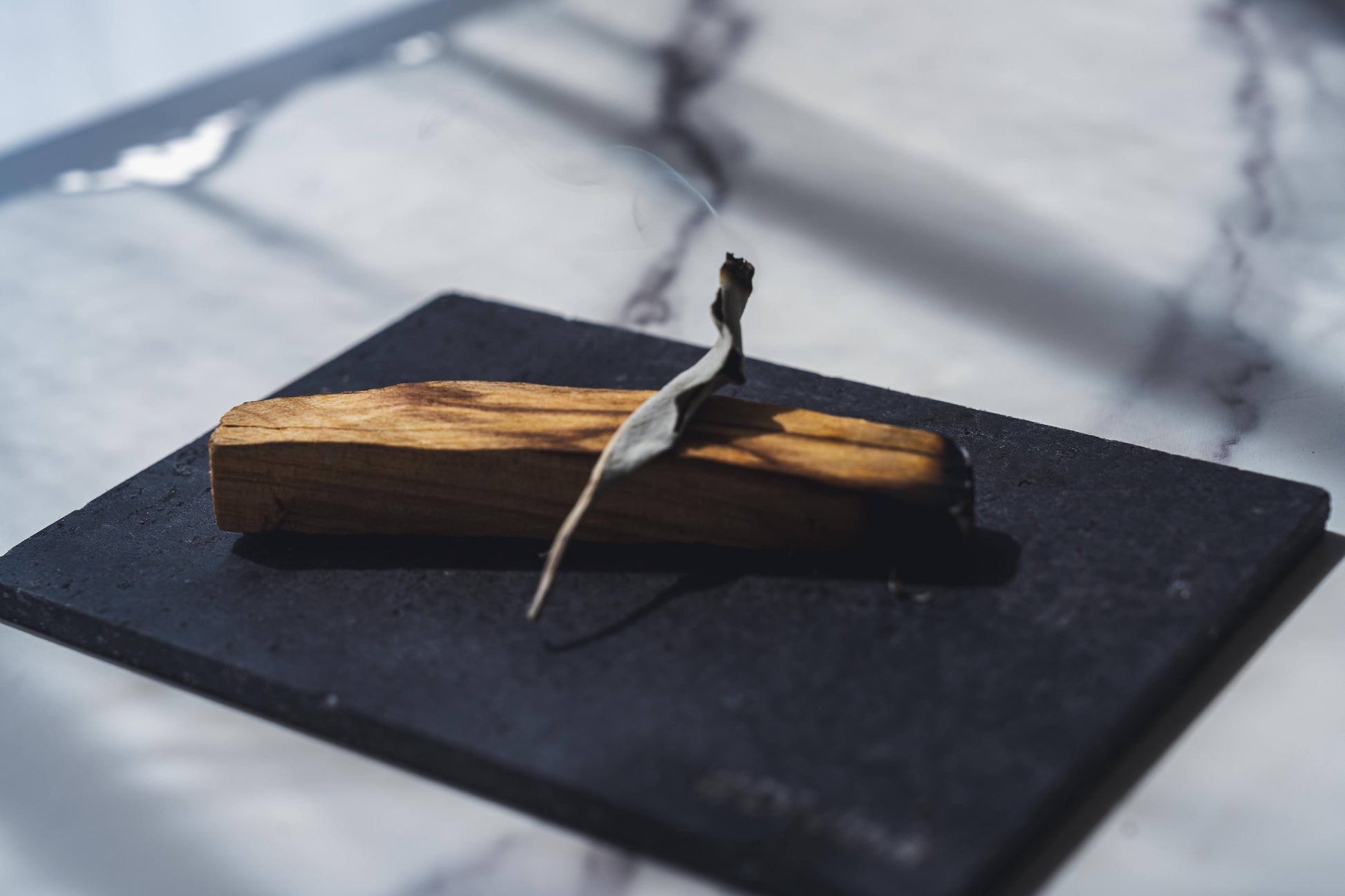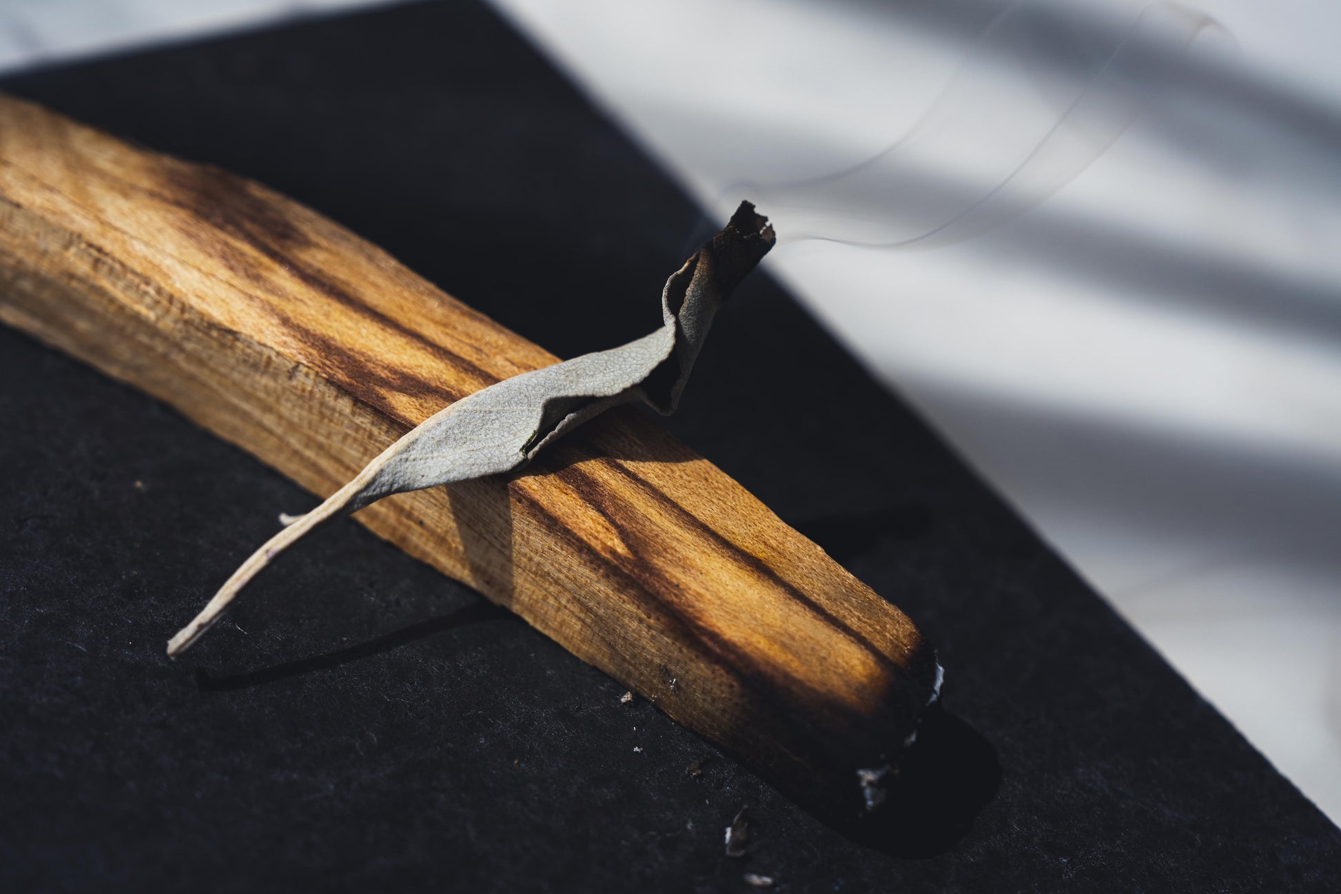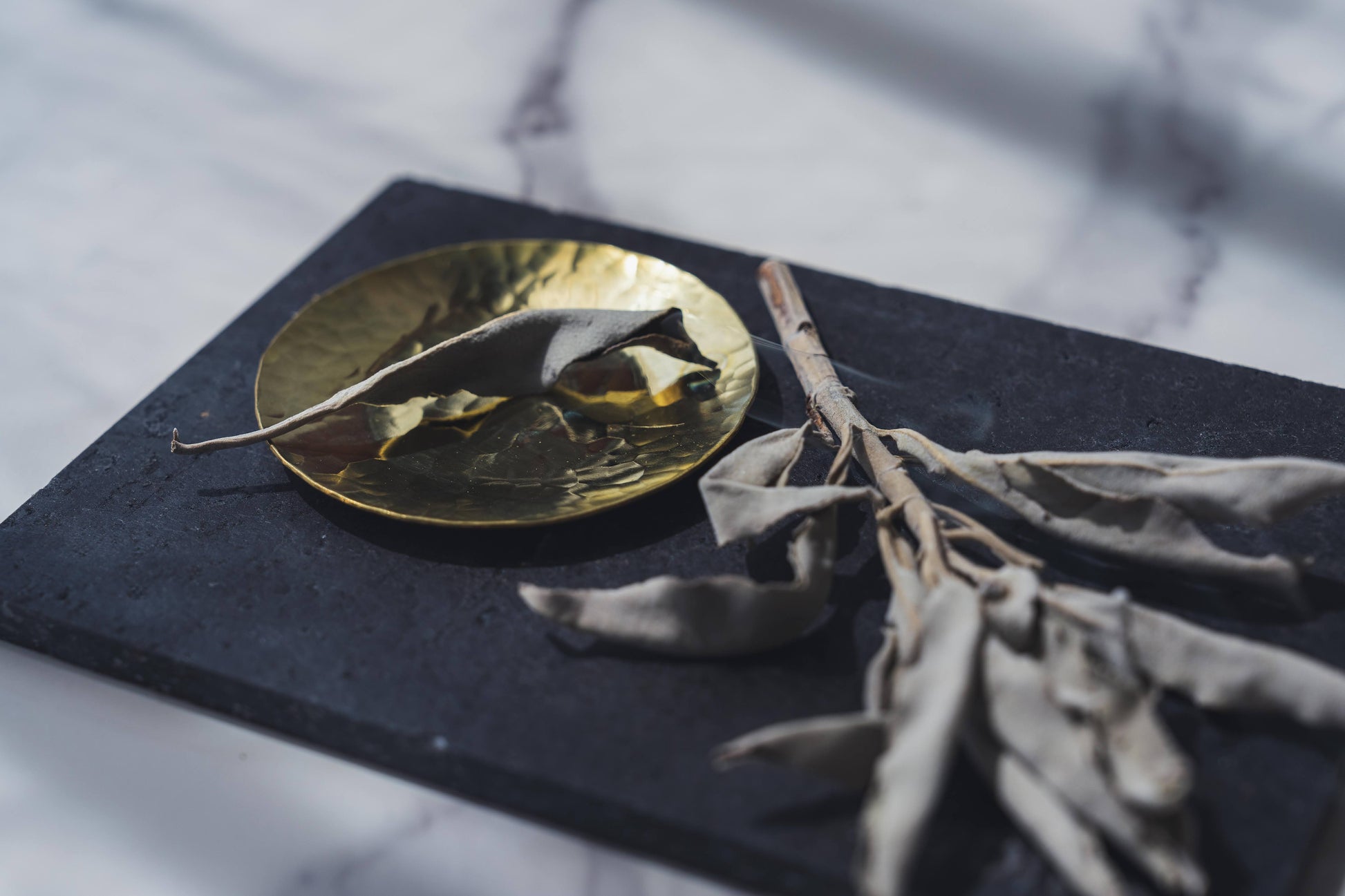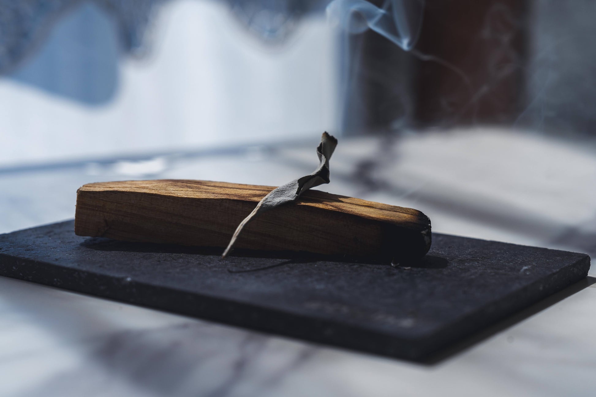 ホワイトセージの葉をちぎり、先端に火をつけ炎が安定したら火を消し香炉など耐熱容器に葉を置きます。終わった後は窓を開け換気を行います。