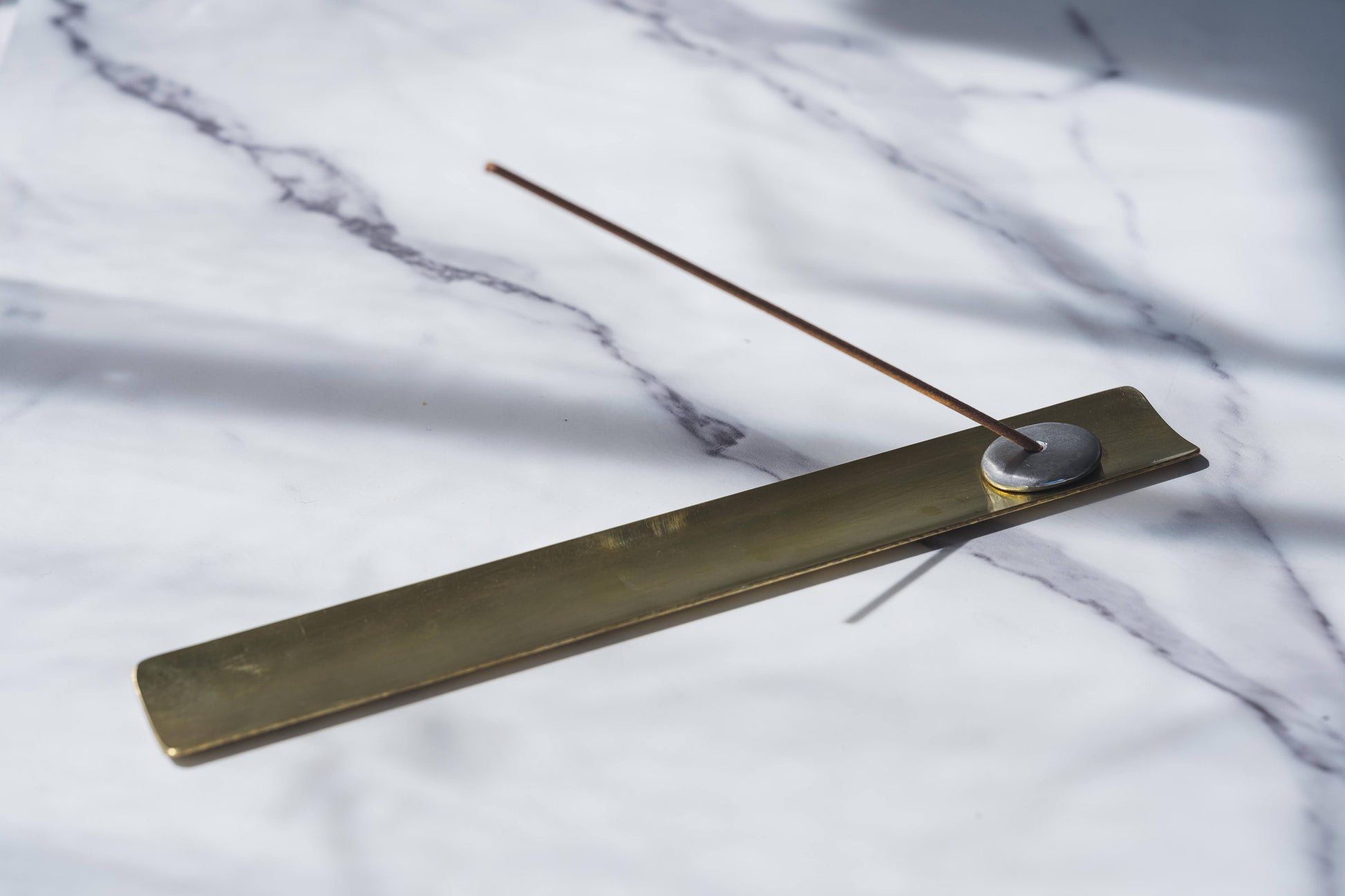 鍮製の受皿と錫のお香立てのセットです。香立ては錫(すず)製で、自然なカタチで仕上げています。それぞれ個性があります。受皿とは別体ですので、適当な位置に調整してお使いください。