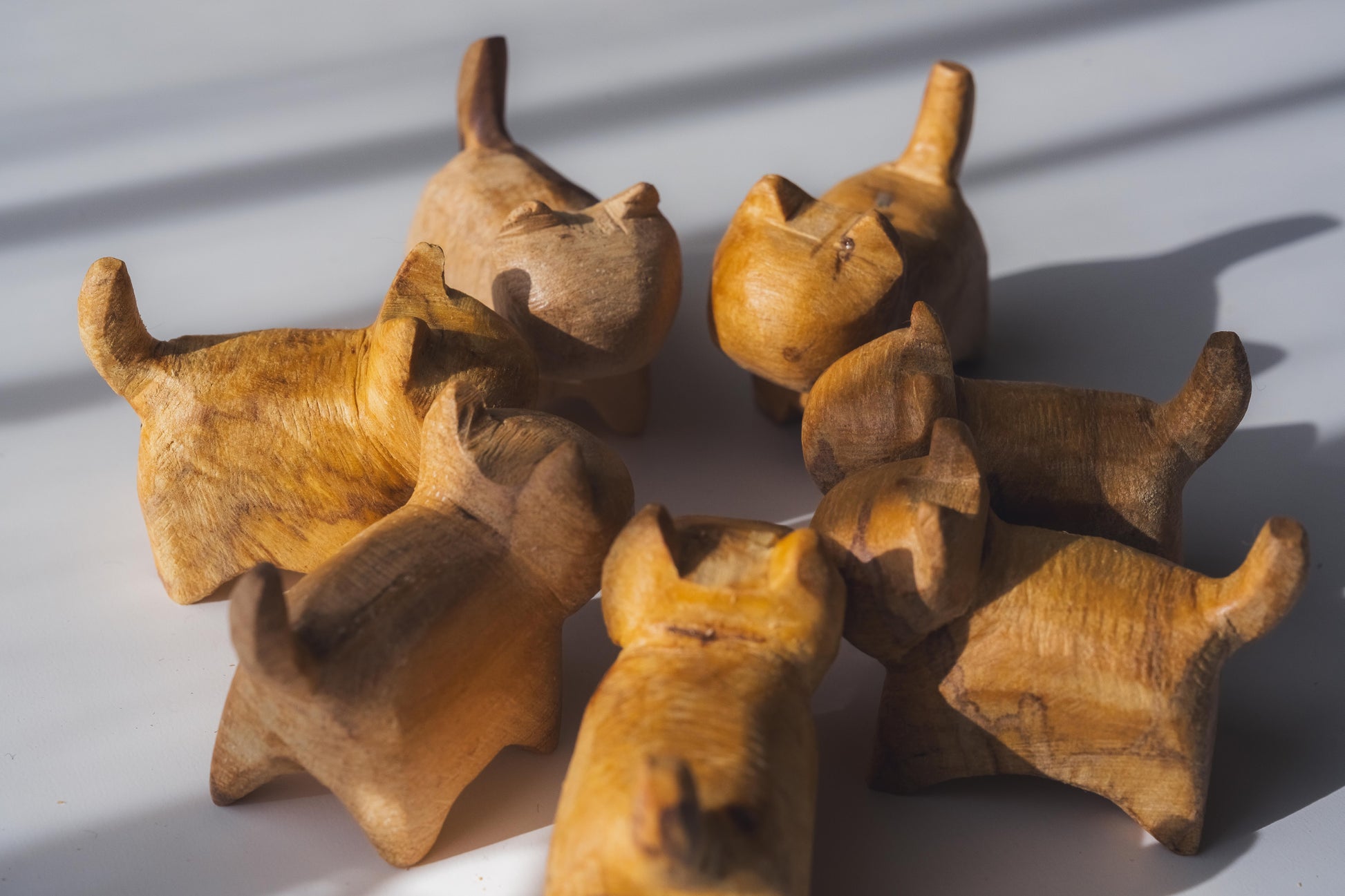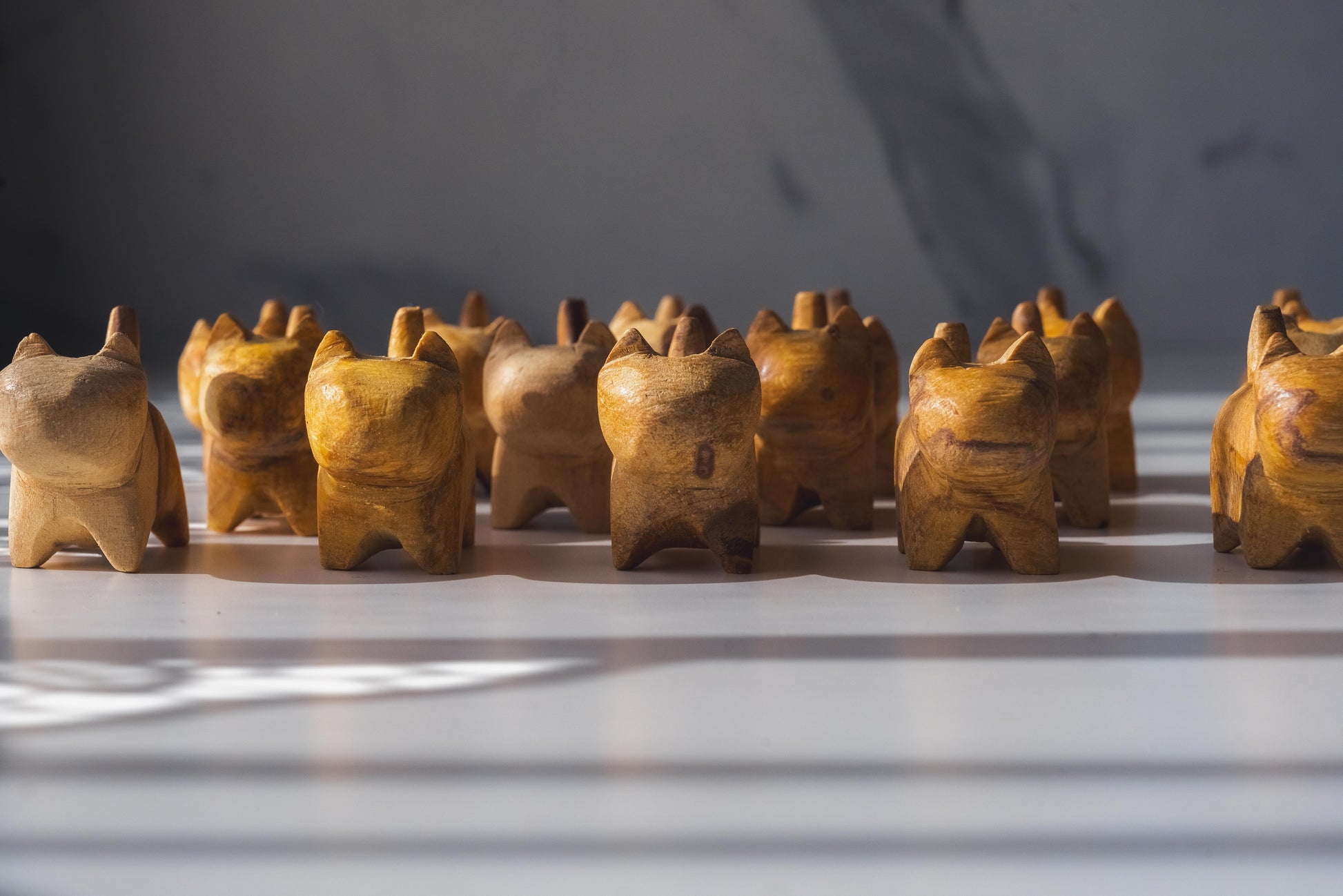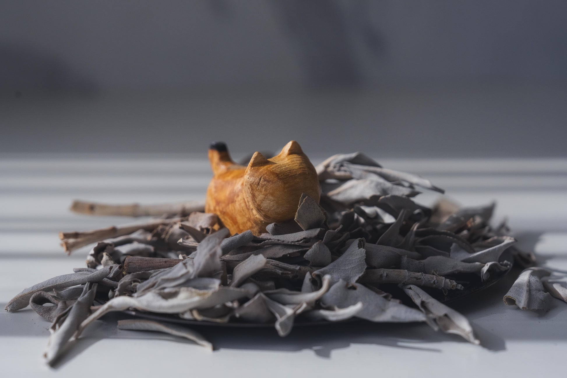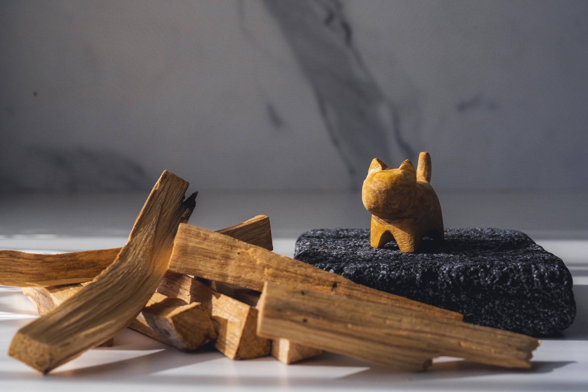 パロサントの木材から、一つ一つ職人が削り出して作った置物。 見かけは普通の木彫りの人形ですが、パロサントなだけあって、置いておくだけでも強い香りがします。もちろん長期間時間が経過すれば香りは弱まりますが、その際には細かめの紙やすりで優しく磨いてあげると、香りが復活します。 また、少し可愛そうではありますが、通常のパロサントスティックのように火をつけてお香の用に使用することも可能です。その場合は尻尾の方から少しずつ。。。 すべて手作業なため、猫の表情やボディの形状は個体差が大きいです。自然界の動物もみな異なる表情をしているように、その違いをお楽しみください。 お部屋のアロマに、家の守り神に、下駄箱の消臭剤にに、一家に一匹、パロサンキャットはいかがでしょうか。 *猫の置物一体の価格です