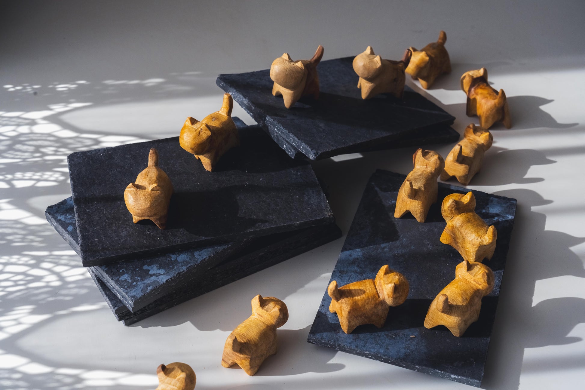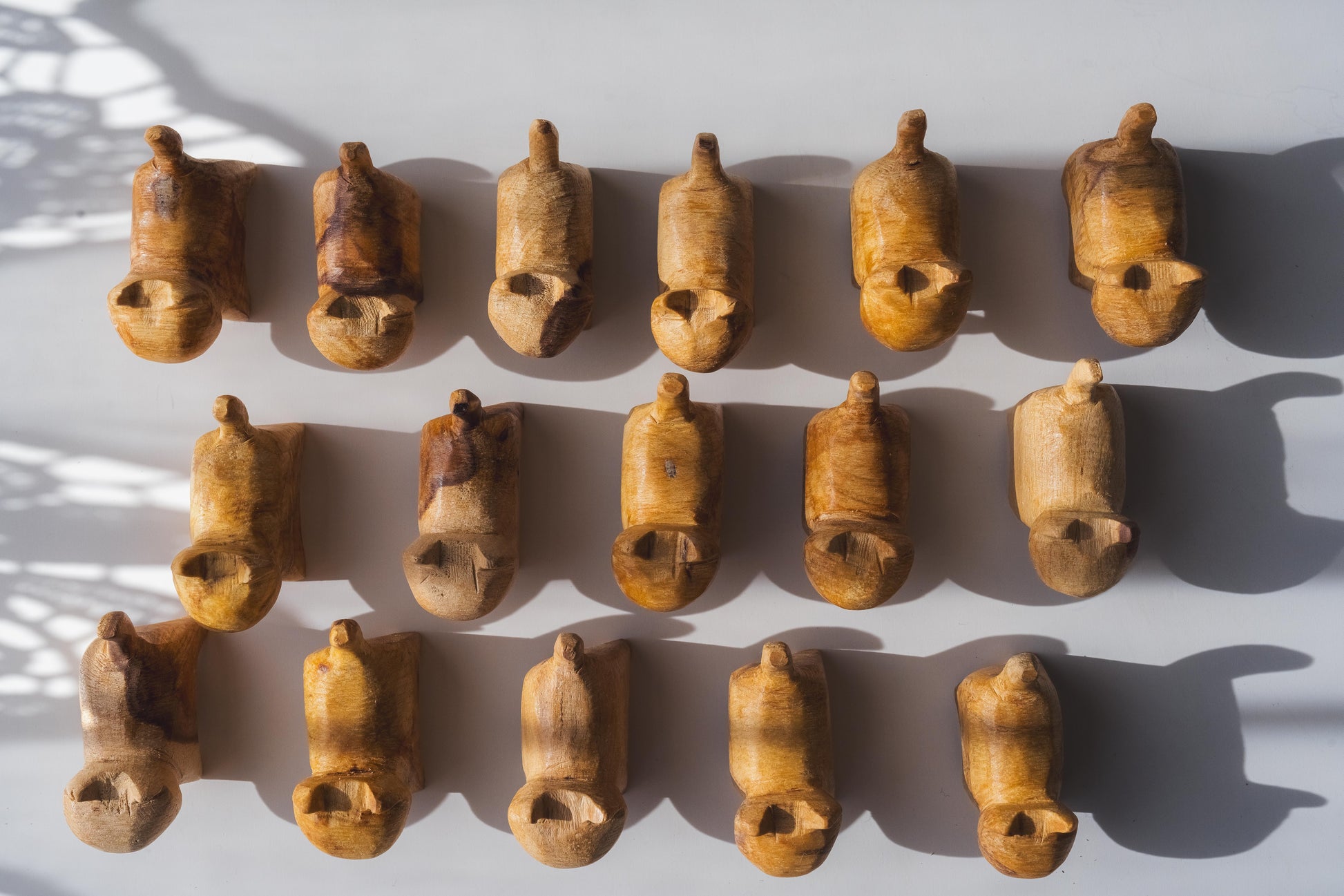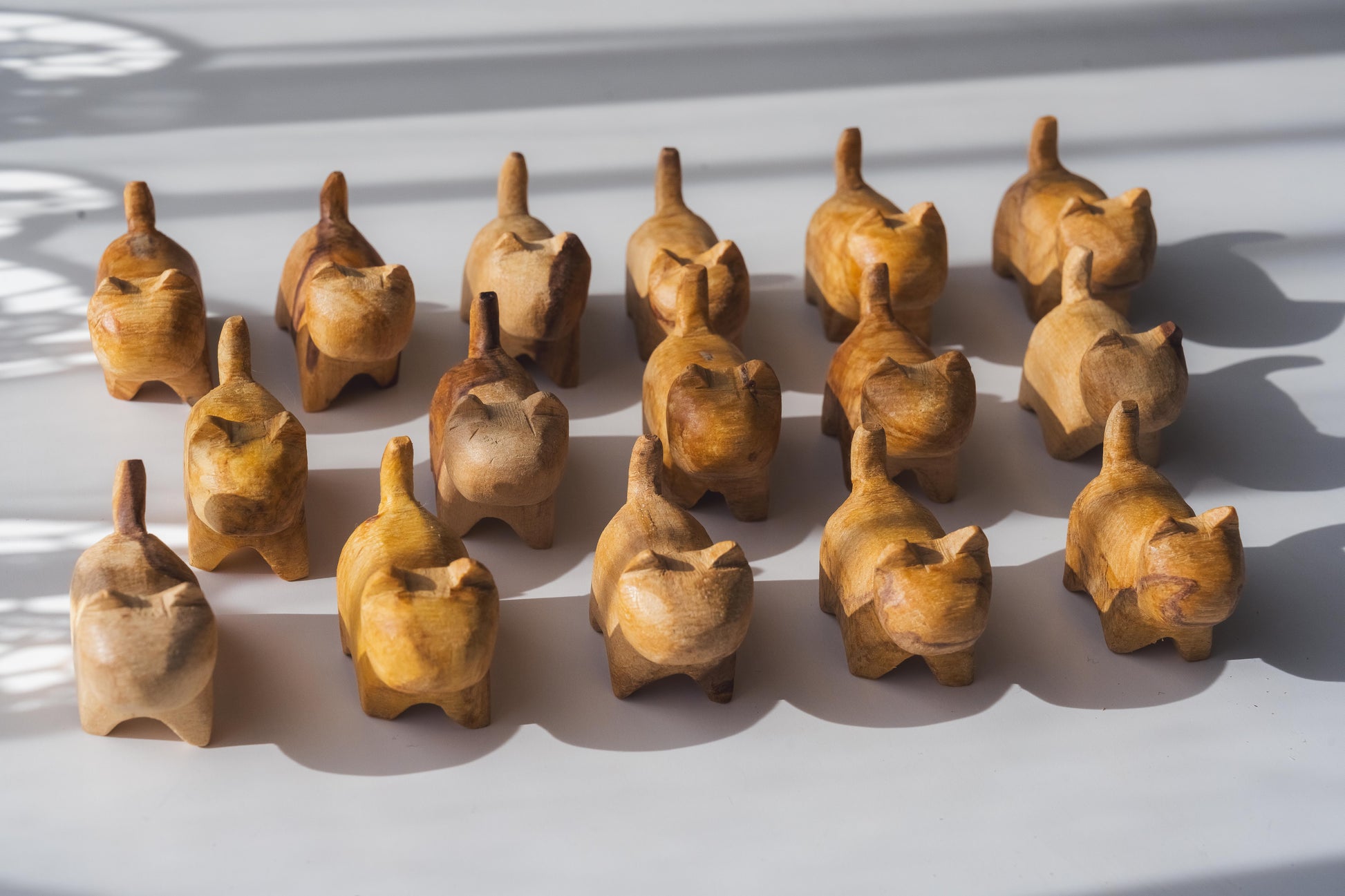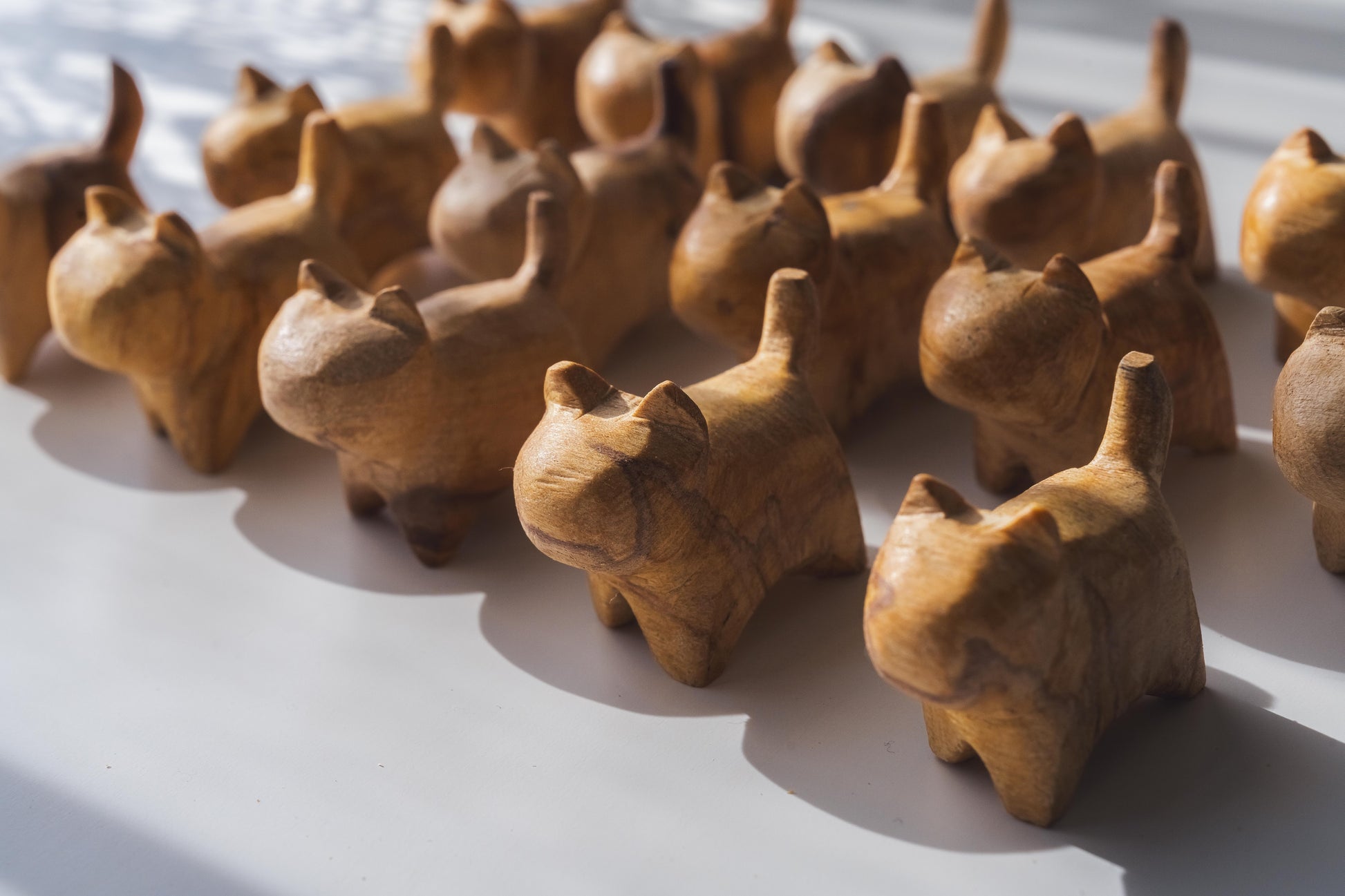 パロサントの木材から、一つ一つ職人が削り出して作った置物。 見かけは普通の木彫りの人形ですが、パロサントなだけあって、置いておくだけでも強い香りがします。もちろん長期間時間が経過すれば香りは弱まりますが、その際には細かめの紙やすりで優しく磨いてあげると、香りが復活します。 また、少し可愛そうではありますが、通常のパロサントスティックのように火をつけてお香の用に使用することも可能です。その場合は尻尾の方から少しずつ。。。 すべて手作業なため、猫の表情やボディの形状は個体差が大きいです。自然界の動物もみな異なる表情をしているように、その違いをお楽しみください。 お部屋のアロマに、家の守り神に、下駄箱の消臭剤にに、一家に一匹、パロサンキャットはいかがでしょうか。 *猫の置物一体の価格です